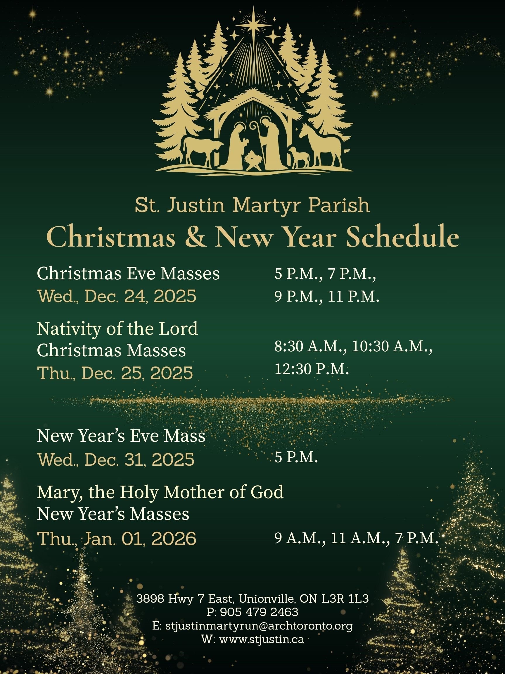 St. Justin Martyr Parish community welcome you all with your family and friends for the 2025 Christmas & 2026 New Year Masses. Let's celebrate our Lord.