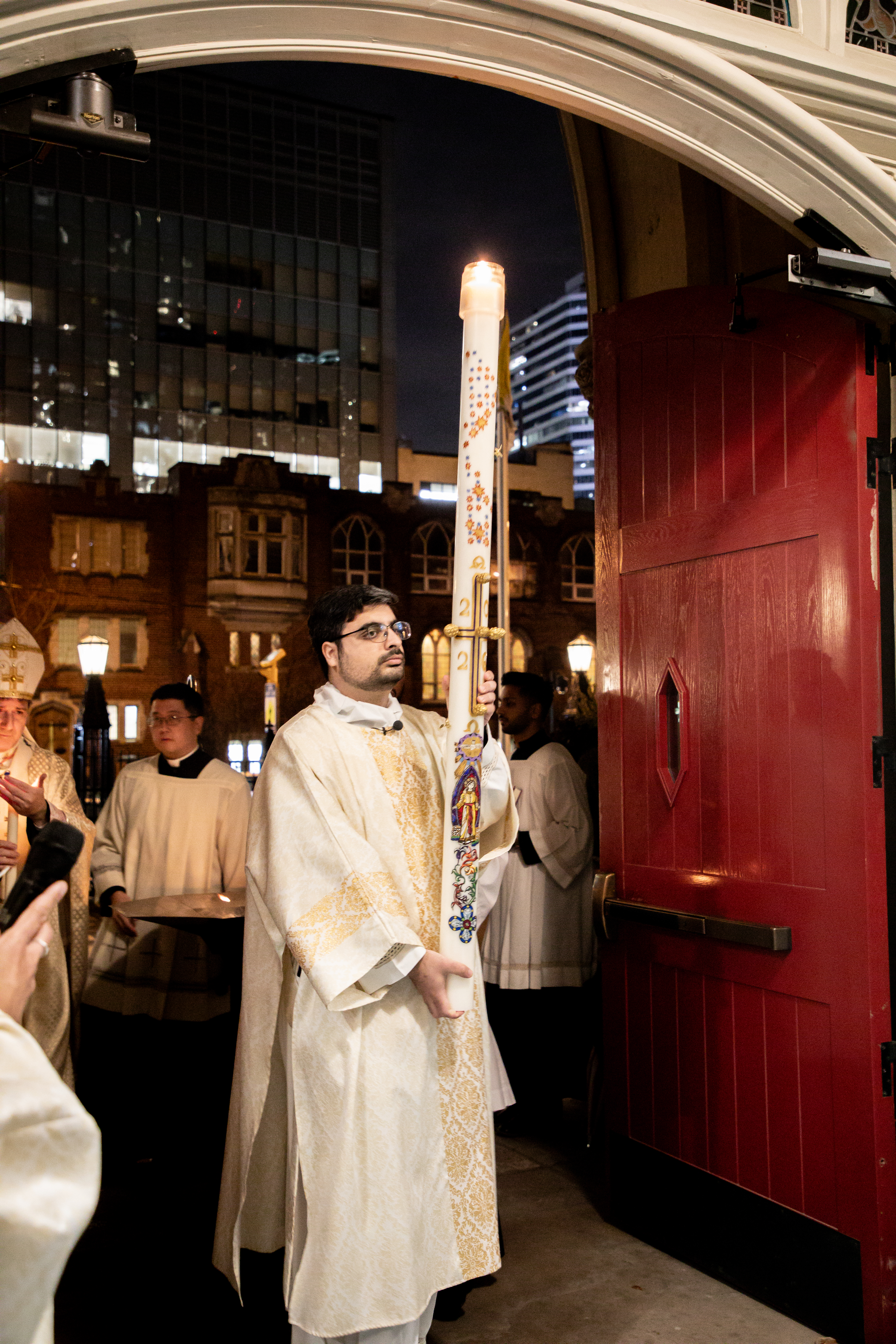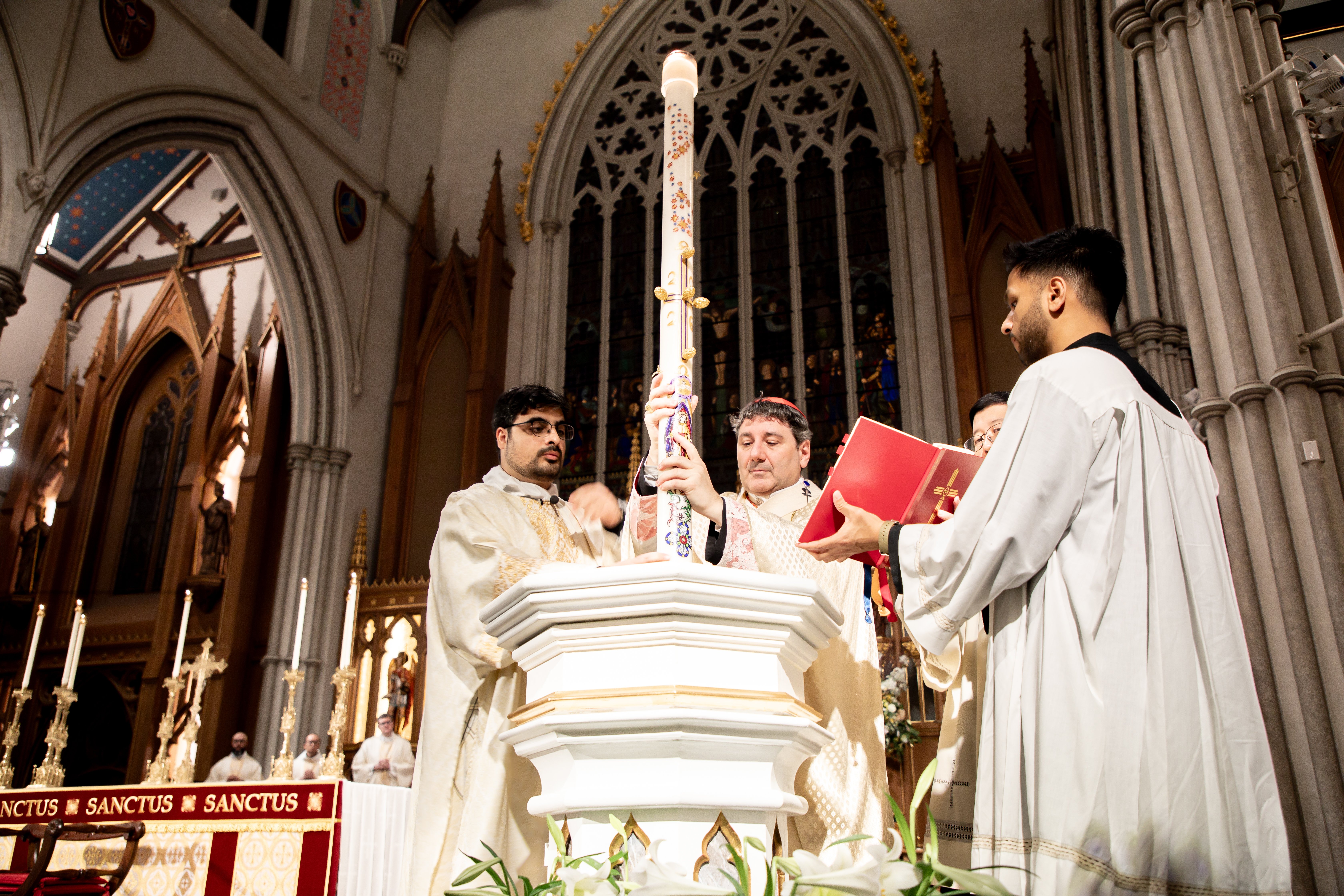 At St. Michael’s Cathedral Basilica, His Eminence Frank Cardinal Leo presided at the Easter Vigil at 9 p.m., celebrating the sacraments with the newly initiated from the cathedral community.